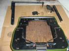 | | 4-Undo the nuts on top. Orient center plate vertically to remove square base. | |