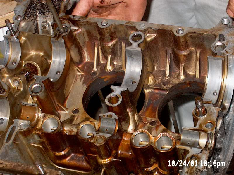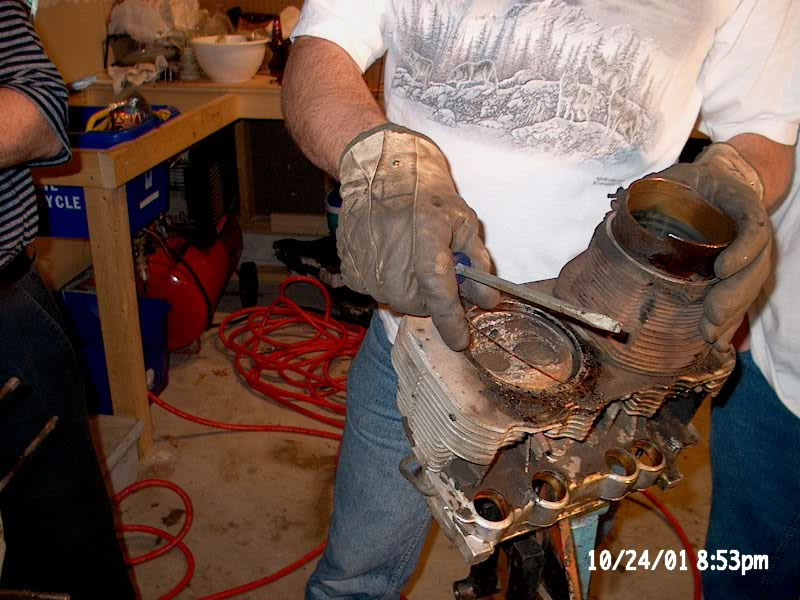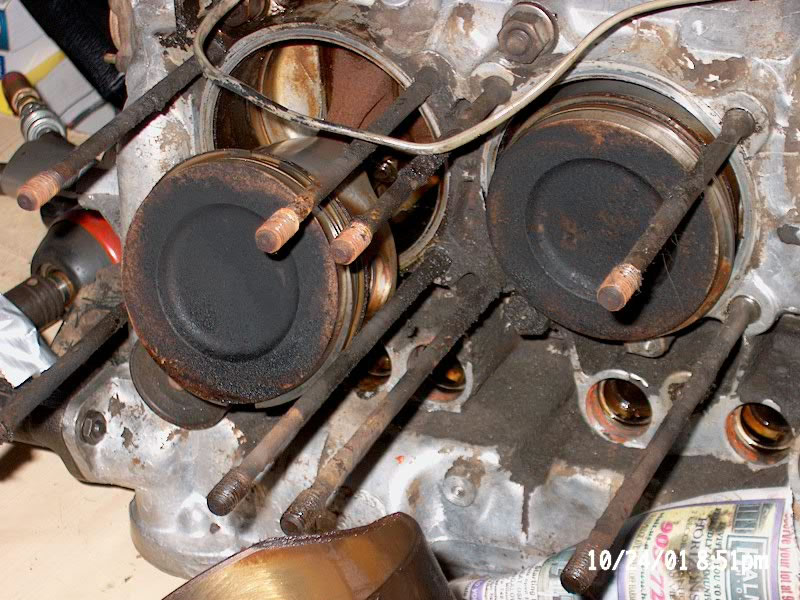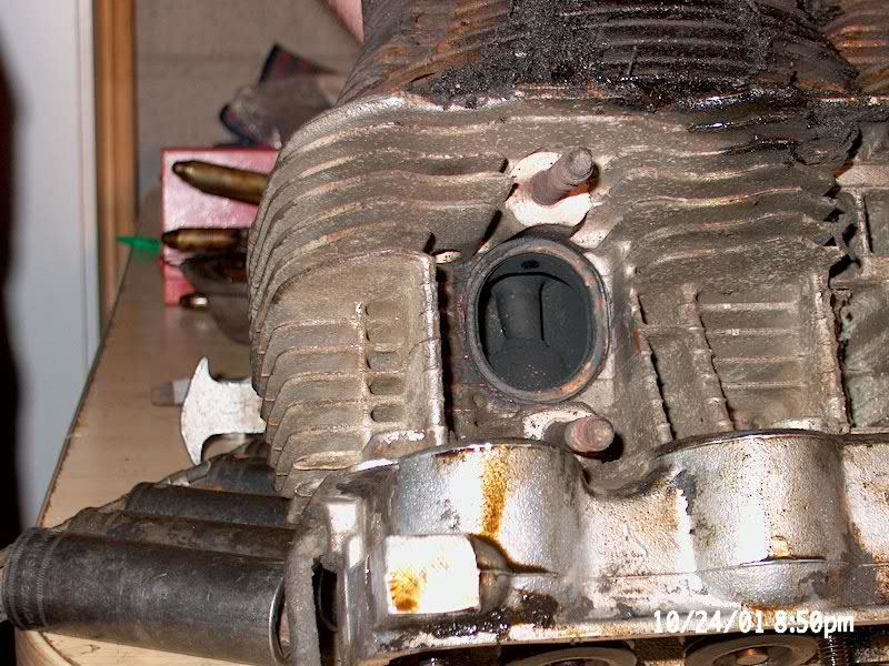 as black as night, the exhaust studs were mangled. The cylinders were