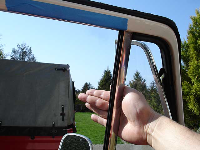 Where is the painter's tape protecting the window I talked about earlier? It should be on the window edges at this point because the barbs on the felt channel clips can scratch the glass as you raise the window.