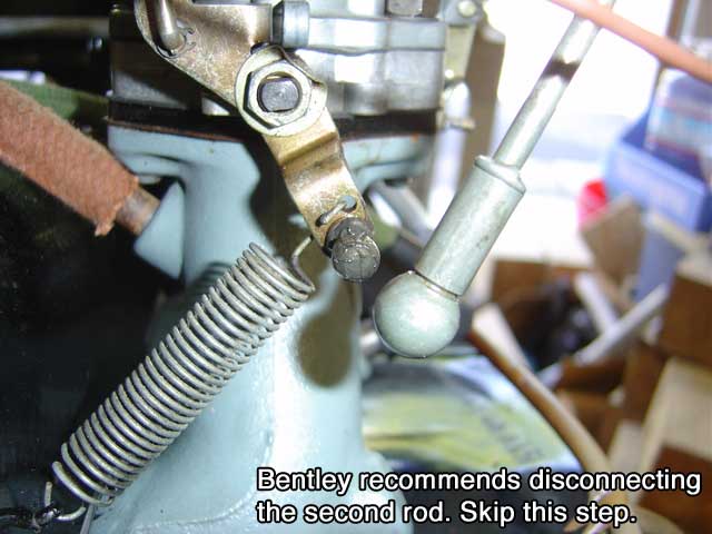 For 72, Bentley recommends disconnecting the right carb connecting rod and adjusting the position before syncing. I found that a high idle condition was caused by the left connecting rod being too long. Bentley makes no mention of adjusting this rod but not knowing what the specified length should be I decided to adjust it to cure my high idle.