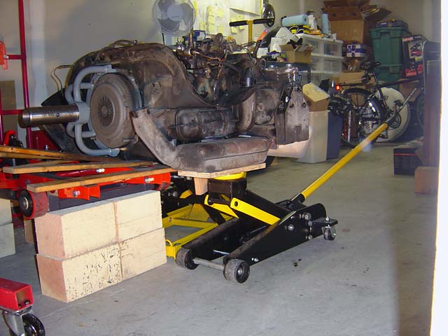 The traditional tool for VW engine removal at home is the dolly. All the factory photos you'll see show a pair of technicians using a long transmission jack to pull and engine and transition from a beetle as one unit.