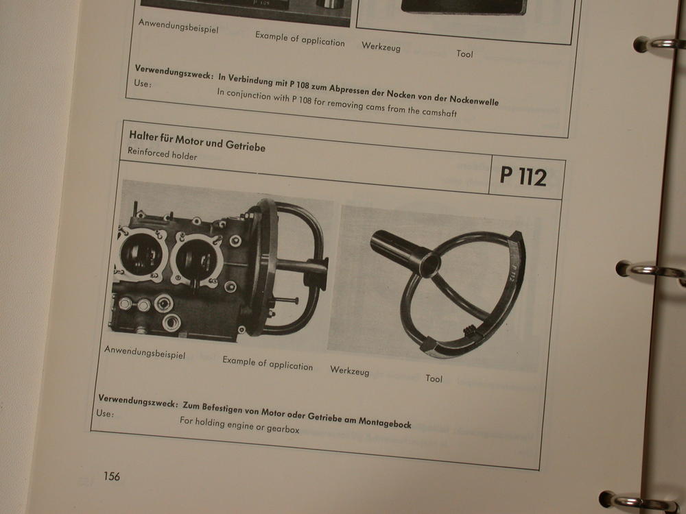 The VW parts vendors sell a surprisingly expensive engine stand which is not made from box steel and is incredibly! bouncy when the engine is fitted. My advice is to steer clear of this stand as it's just the cheapest version you can buy and to be fair it was only designed to lift a Type 1 engine and it is a poor reproduction of the factory tools. One thing you'll notice about the design of the yoke is that it is a poor reproduction of the original yoke Matra-Werke GmbH made for the VW factory as well as VW dealerships. |