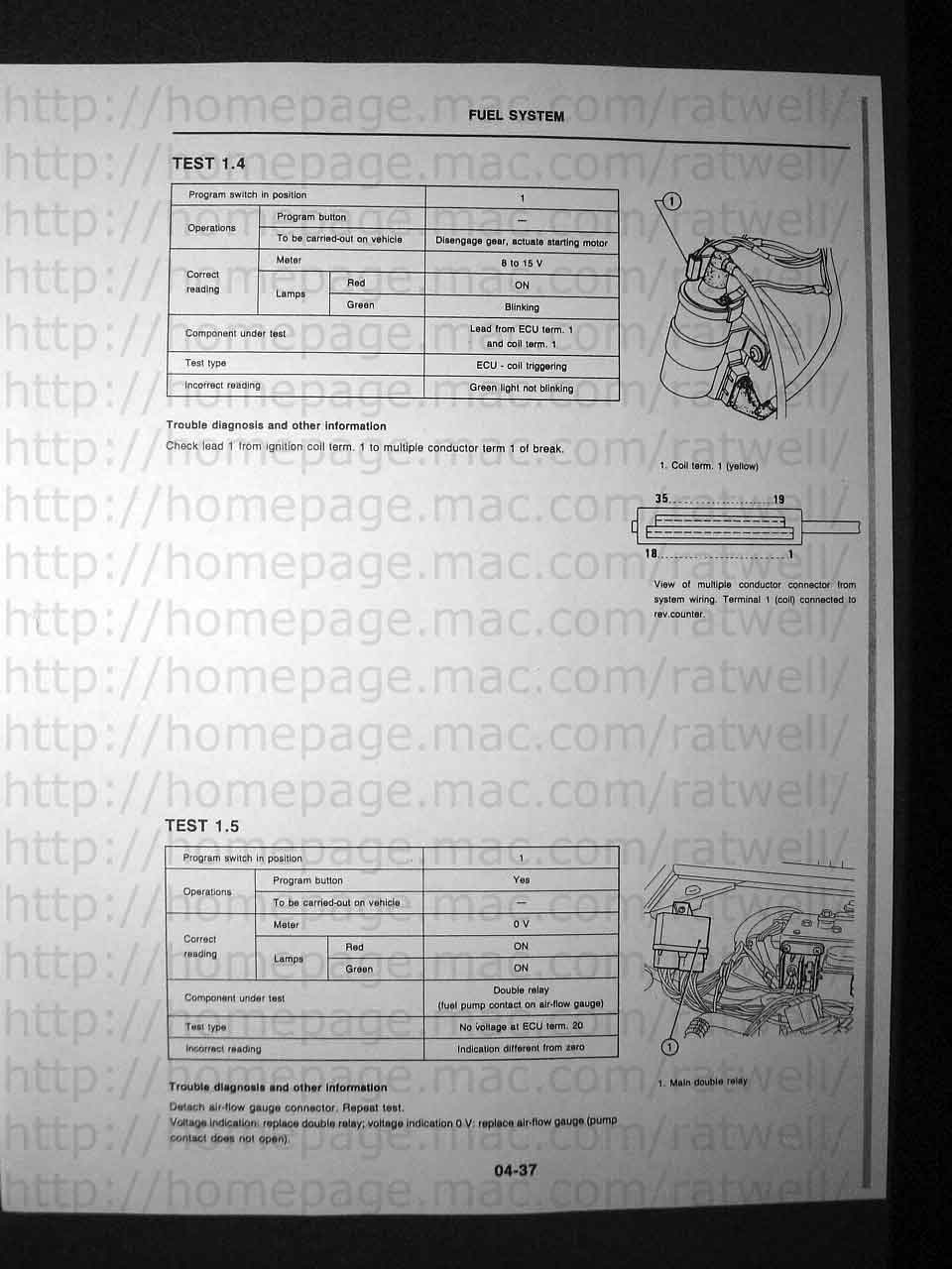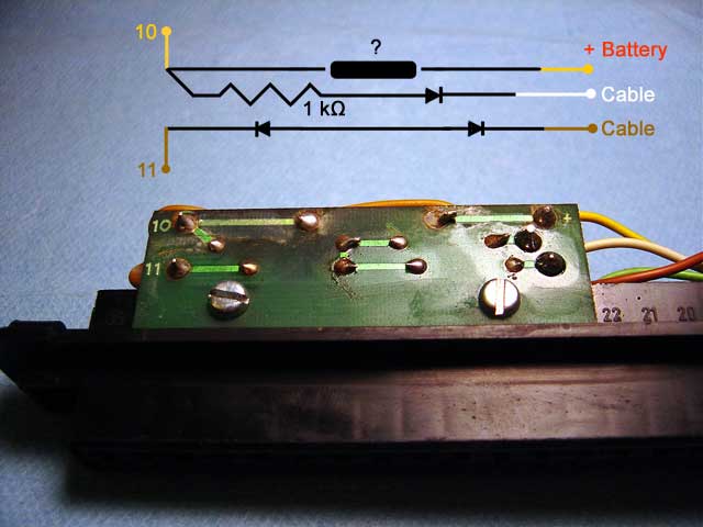 If you have a tester and want to build a cable you'll need to butcher an L-Jetronic wiring harness for the parts. You can locate the battery clamps easily I bet. The male FI connector was hard to find until I finally located Eagle Day as a vendor so it's now possible to build a cable. It's a little more complicated that it seems and I'm not 100% sure about the components on the circuit board. I've yet to identify the exact diodes used and the black object. Any help would be appreciated.