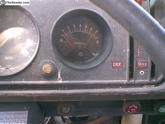 Contrary to popular belief the baywindow dash did not have an optional tachometer. Once in a while on eBay or Samba, "bus" tachometers come up for sale either as singles or as part of a complete instrument cluster. The last one I saw was offered for $300 and included a KM speedo with trip odometer to give you an idea of the sillyness of the pricing.