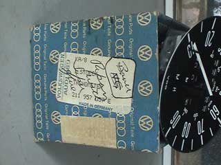 These faux tachometers are either VDO units from other VW/Audi models and mounted to fit the bus instrument cluster or are modified to look original. A red needle when the rest of the gauges have white needles is dead give-a-way that you are dealing with a forgery so don't get fooled. Instead, purchase a modern VDO tach and appropriate mounting ring for the clock location instead of wasting your money on an old piece of junk being proferred as NOS. Order the 220-09101 mounting ring from Bus Boys.