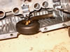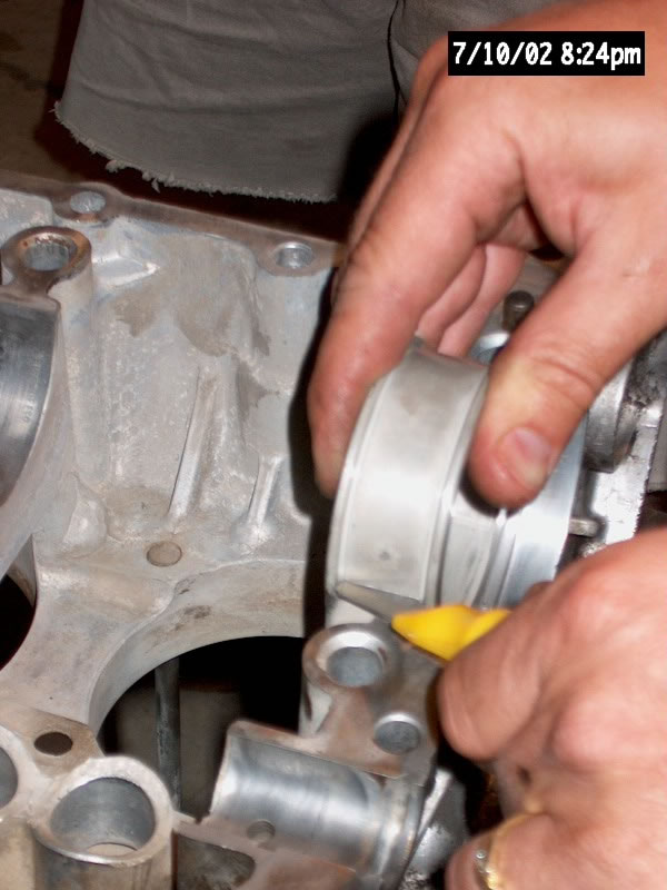 Scoring the bearings to ensure they are seated properly when the halves are married. |